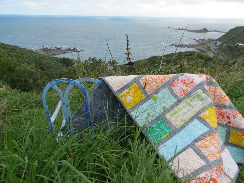 Je vous avais décris en détail le quilting (piqué libre) de mon patchwork moderne brique dans un précédent article. Et maintenant, je ne peux pas m’empêcher de  partager avec vous des photos de ce quilt fini. Il y a déjà un petit moment que ce quilt est terminé. En effet, nous habitions encore en Nouvelle-Zélande, Laura n’existait même pas. Je vous emmène sur mon point de vue préféré de Wellington.