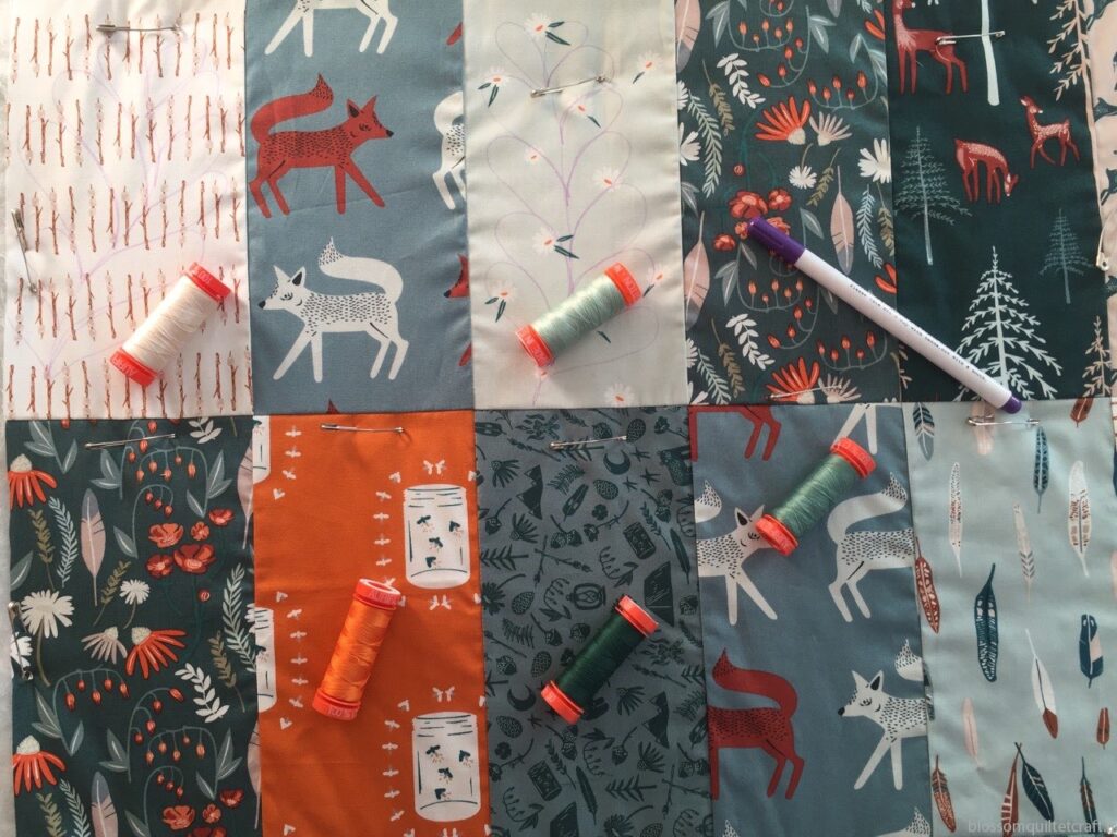 Je vais faire une petite pause sur les tutoriels (j’espère que vous les appréciez) pour vous montrer un projet récent. J’aime beaucoup coudre des patchworks simples. Avec les beaux tissus des collections, je trouve qu’il n’est pas forcement nécéssaire de compliquer l’assemblage. Par contre, quand je couds un projet simple, j’aime bien m’amuser avec le piqué libre. Cette fois-ci, je voulais m’entraîner à coudre les fameuses plumes en piqué libre. Ces plumes peuvent intimider et je voudrais vous montrer mes premiers résultats.